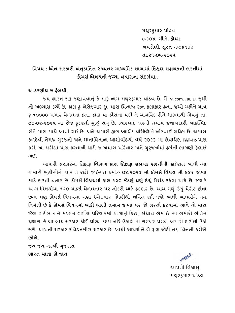 પવનુંતી છે કે કોમસસ વવષયમાાં બાકી ખાલી તમામ જગ્યા પર જો ભરતી કરવામાાં આવે તો મારા
