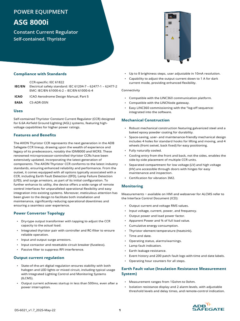 voltage rating of 380V, ensuring that its core functionalities and behavior remain consistent with the ICAO Manual 5 requirements.