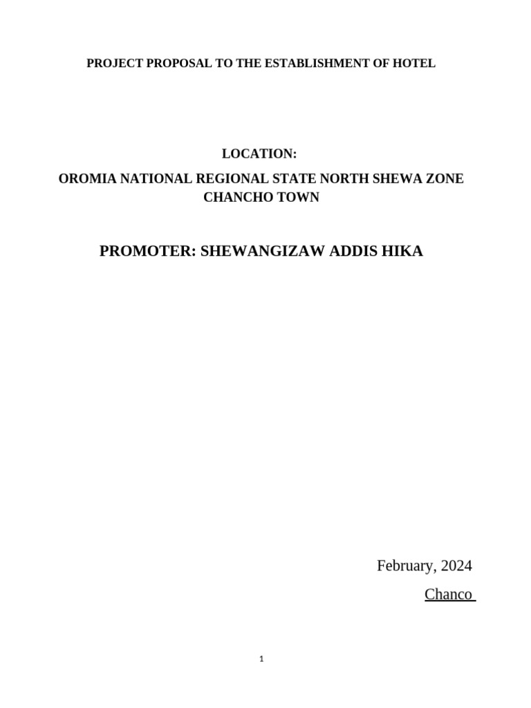 other services. The proposed hotel will be established in chancho town, Oromia National Regional
