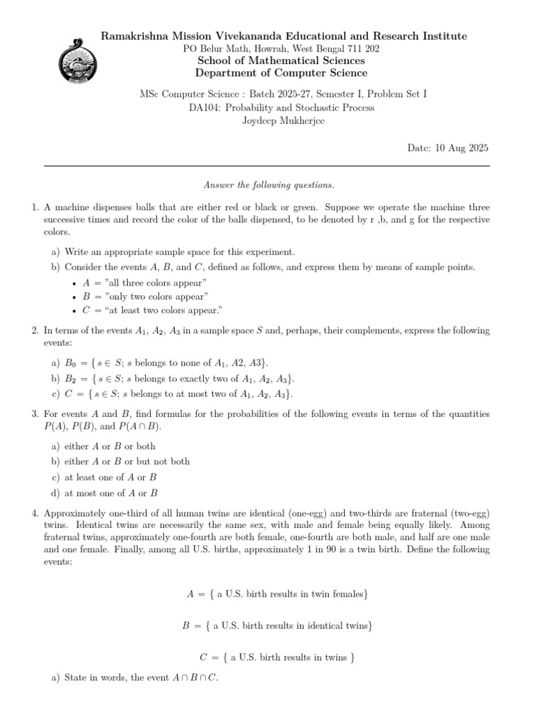 MSc Computer Science : Batch 2025-27, Semester I, Problem Set I