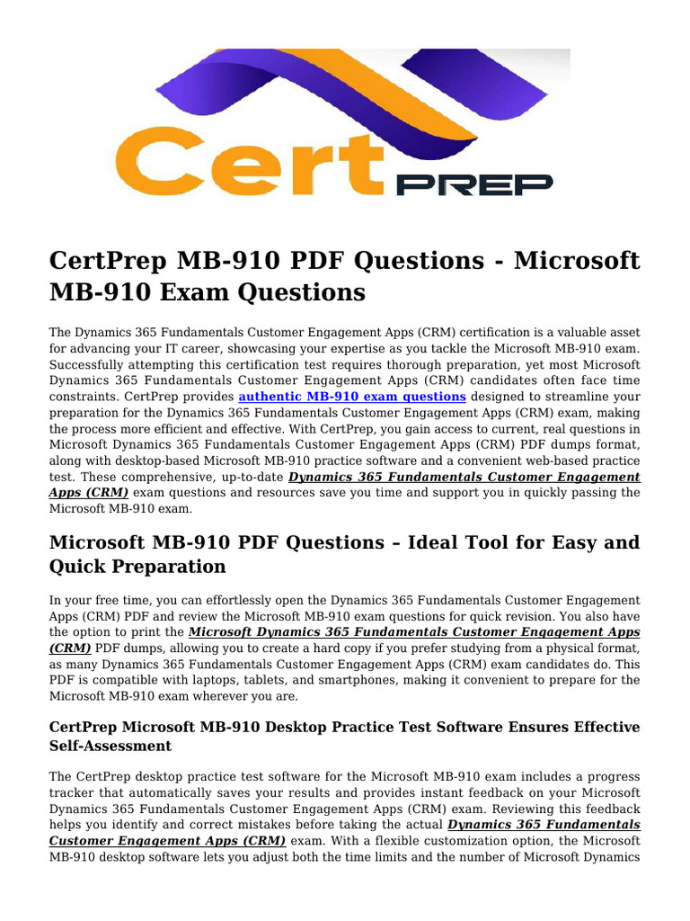 Apps (CRM) PDF and review the Microsoft MB-910 exam questions for quick revision. You also have
