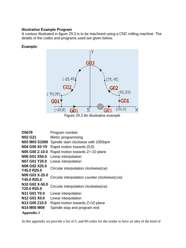 A contour illustrated in figure 29.3 is to be machined using a CNC milling machine. The