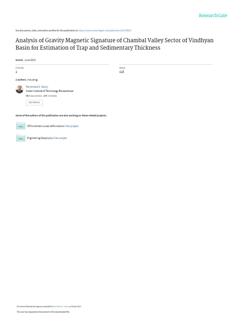 ihow in various levels of Pre-Cambrian sediments in some of the exploratory wells. Study area includes the Chambal