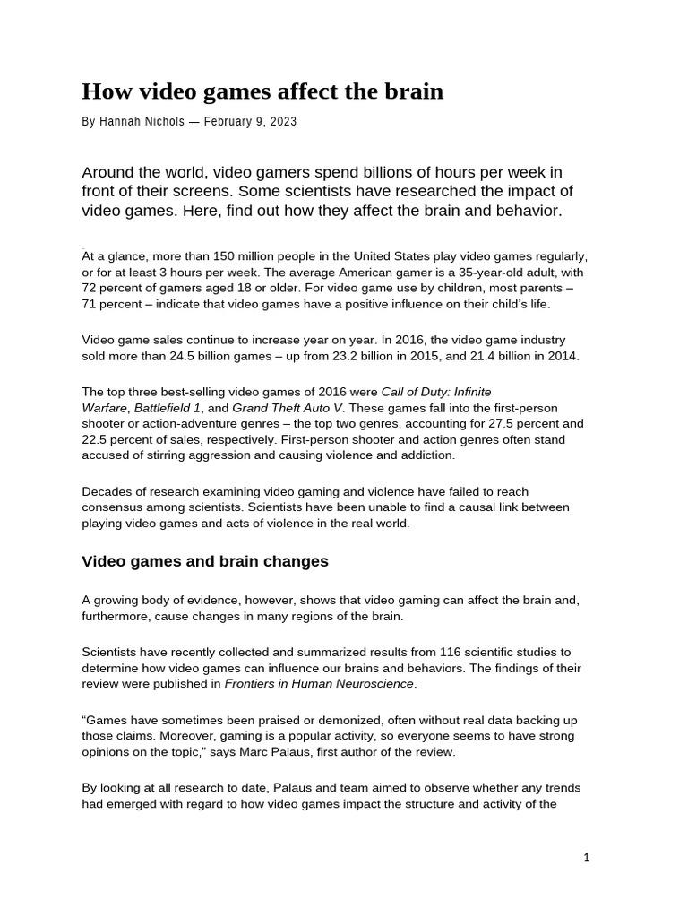 A growing body of evidence, however, shows that video gaming can affect the brain and,