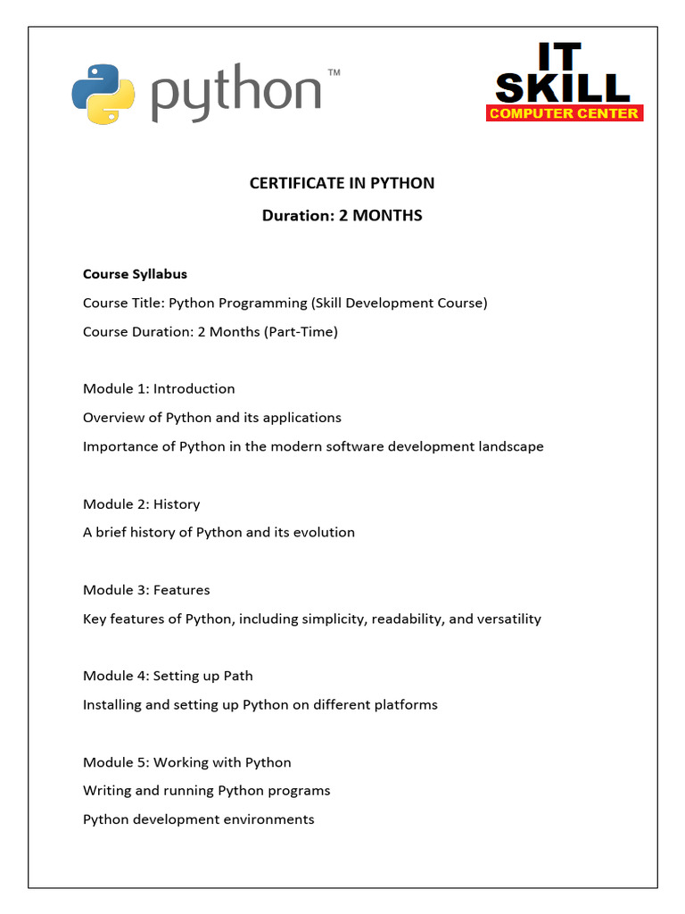Course Title: Python Programming (Skill Development Course)