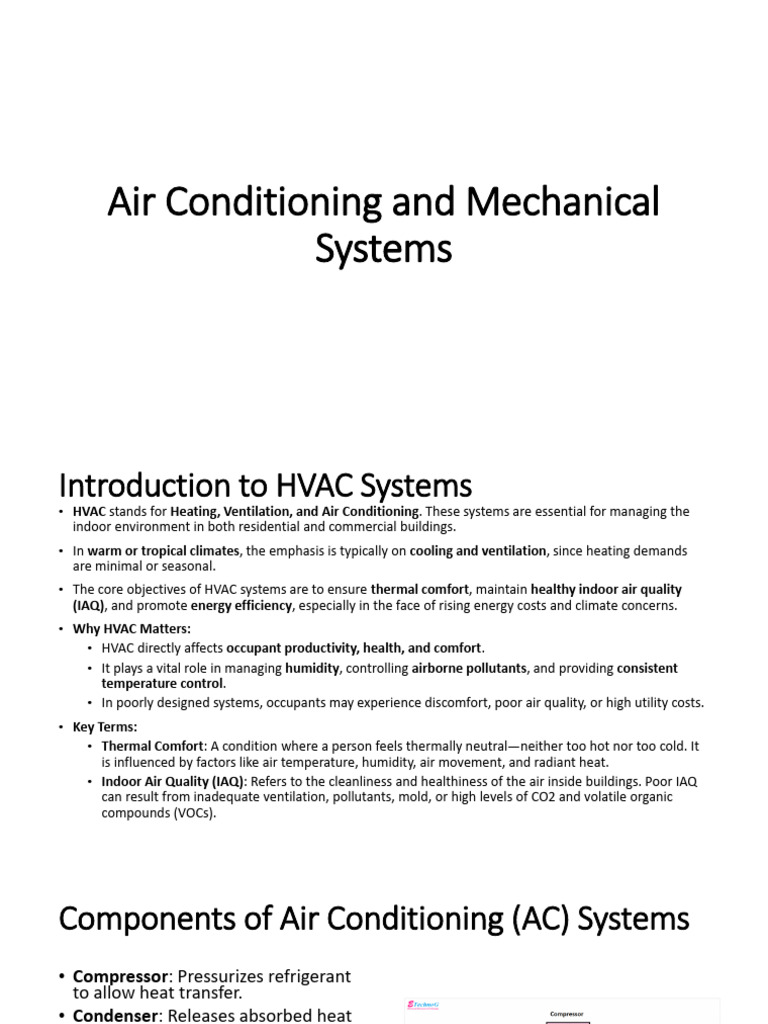• The core objectives of HVAC systems are to ensure thermal comfort, maintain healthy indoor air quality