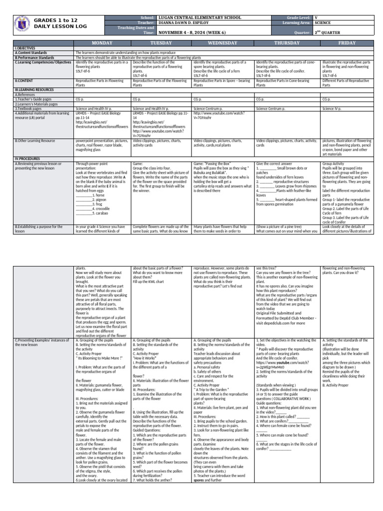 F.Developing Mastery (Female and male reproductive Think – Pair Share (Look for your Unscramble the words to identify the Arrange the life cycle of conifer (Pine How would you evaluate your