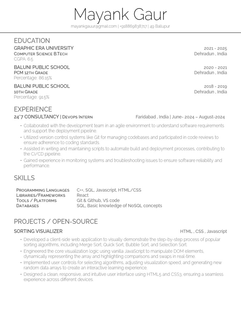 mayankgauur@gmail.com | +918869838717 | 49 Ballupur