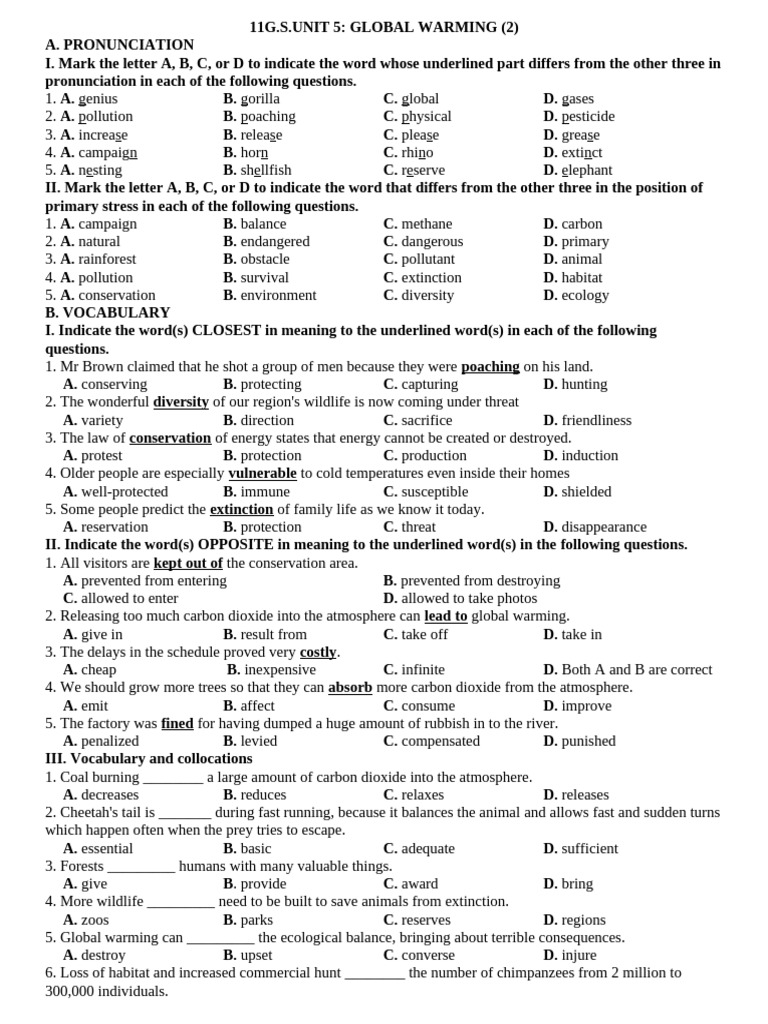 I. Indicate the word(s) CLOSEST in meaning to the underlined word(s) in each of the following