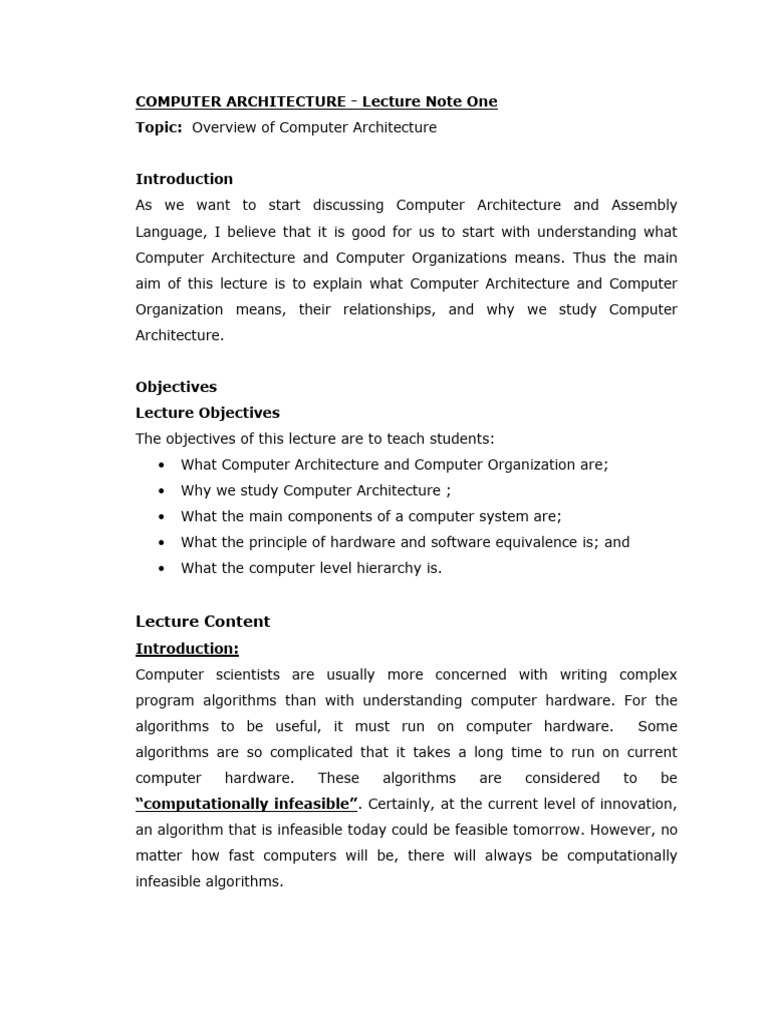 COMPUTER ARCHITECTURE - Lecture Note One