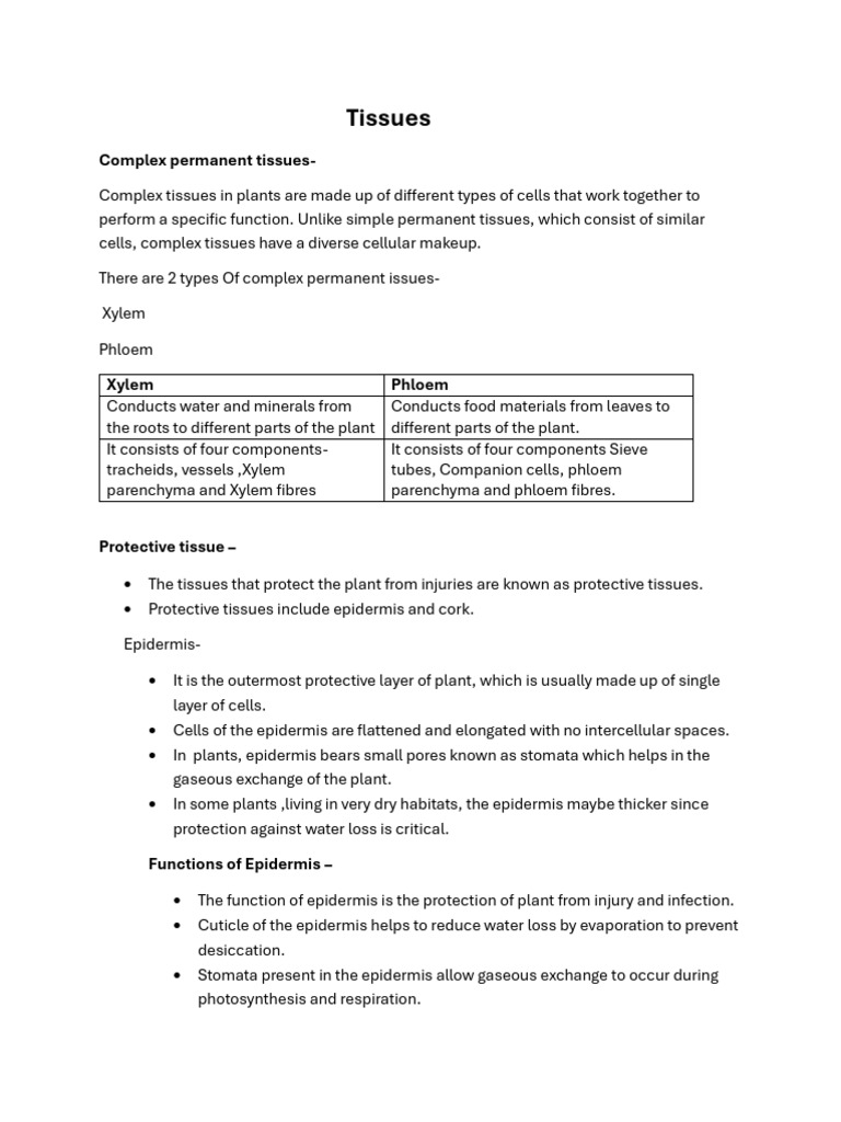 perform a specific function. Unlike simple permanent tissues, which consist of similar