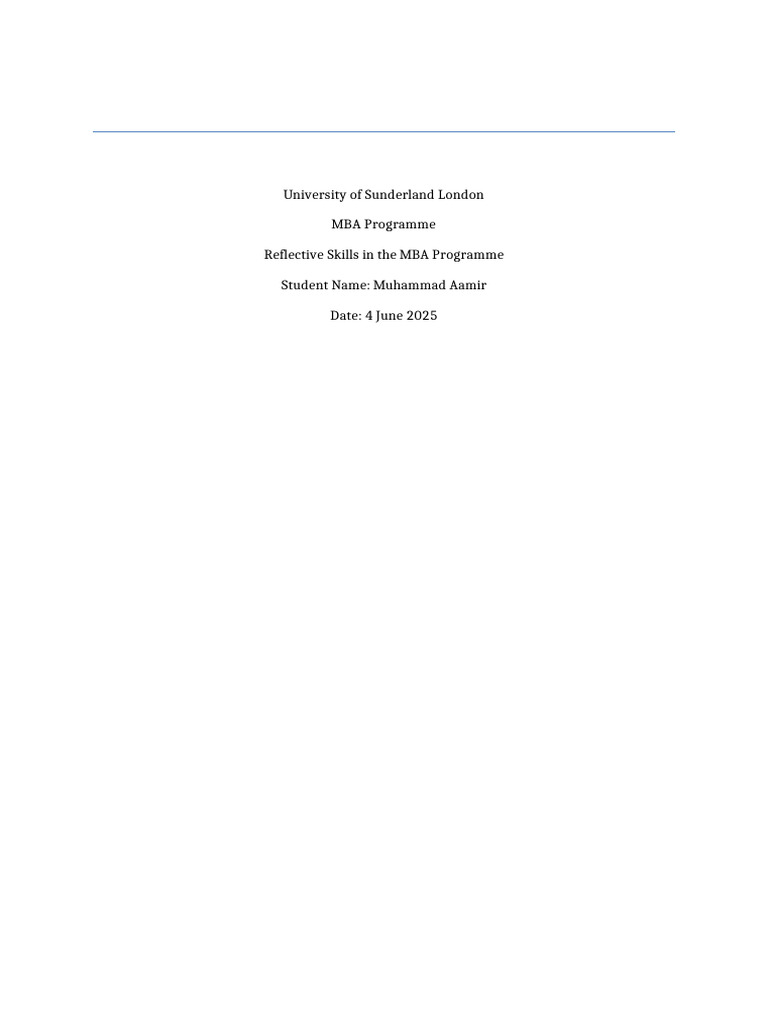 Reflective Skills in the MBA Programme