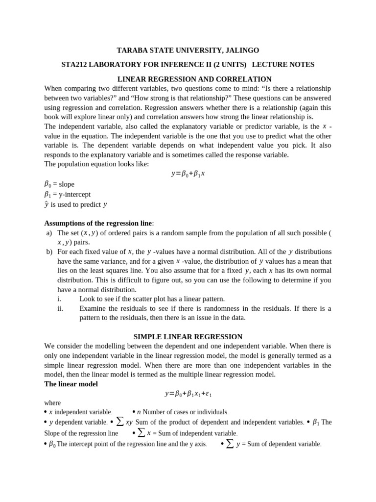 Since, x i, y i are known, equations (1) and (2) give two equations in a and b . Solve for a and b