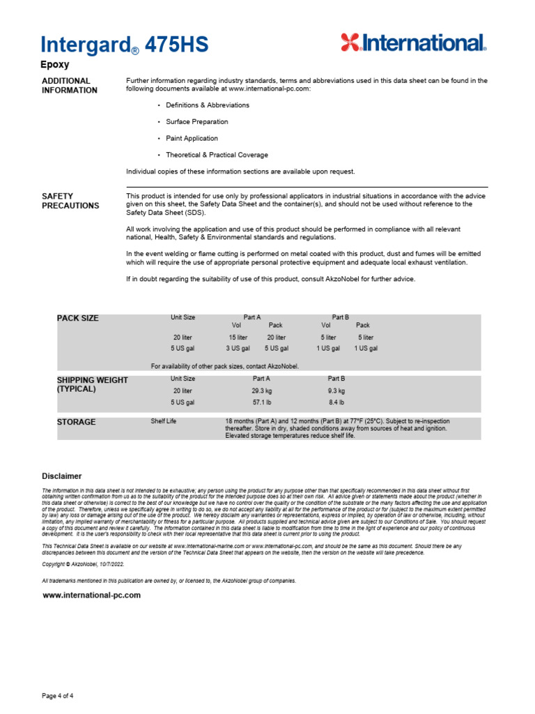 This Technical Data Sheet is available on our website at www.international-marine.com or www.international-pc.com, and should be the same as this document. Should there be any