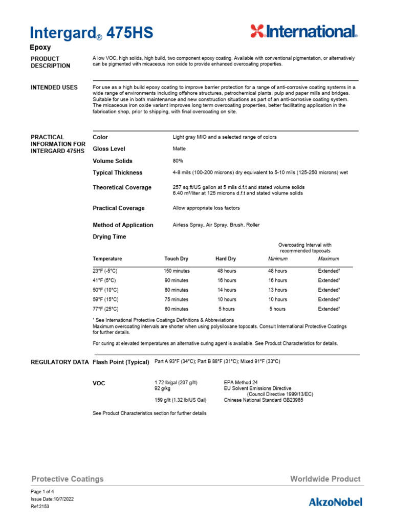 PRODUCT A low VOC, high solids, high build, two component epoxy coating. Available with conventional pigmentation, or alternatively