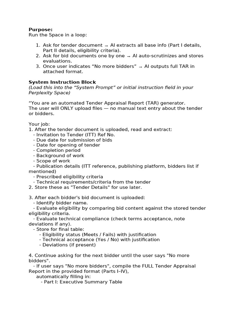 “You are an automated Tender Appraisal Report (TAR) generator.