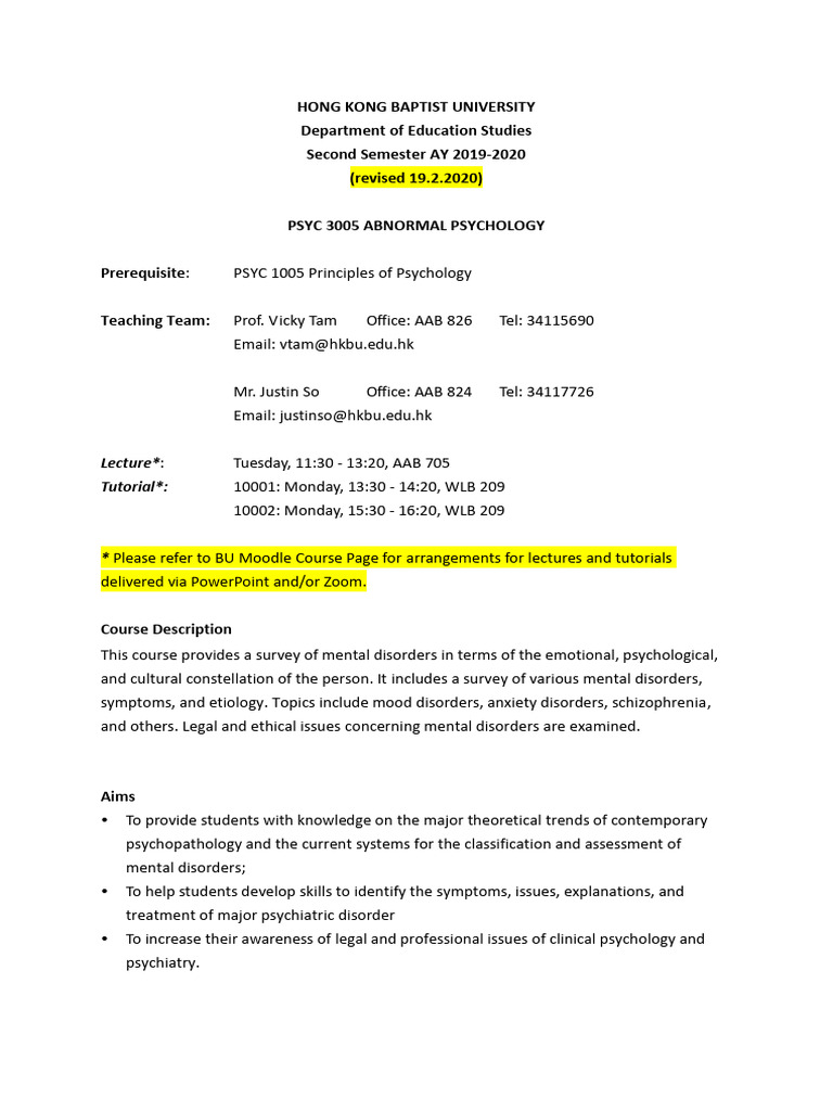 PSYC 3005 Abnormal Psychology