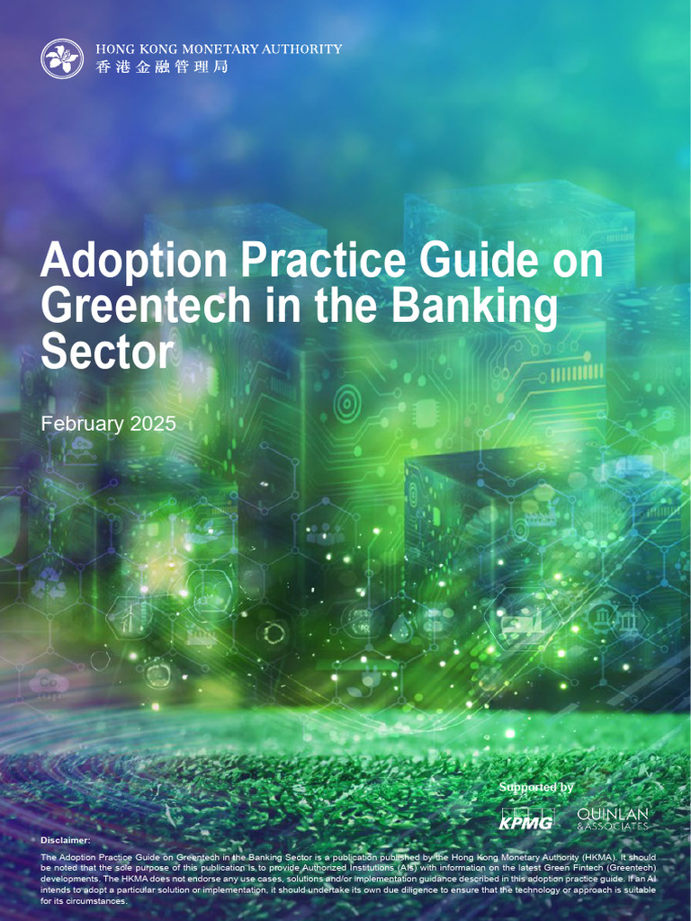 The Adoption Practice Guide on Greentech in the Banking Sector is a publication published by the Hong Kong Monetary Authority (HKMA). It should