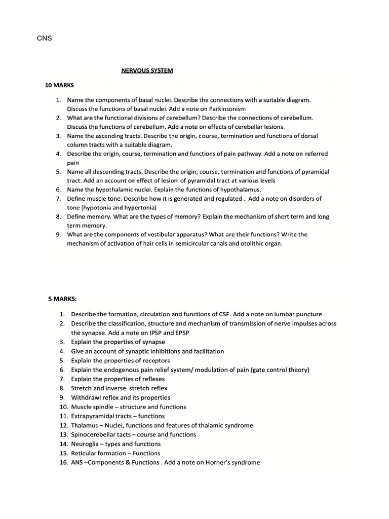 15. What is Cerebro Spinal Fluid and write down the functions of CSF.