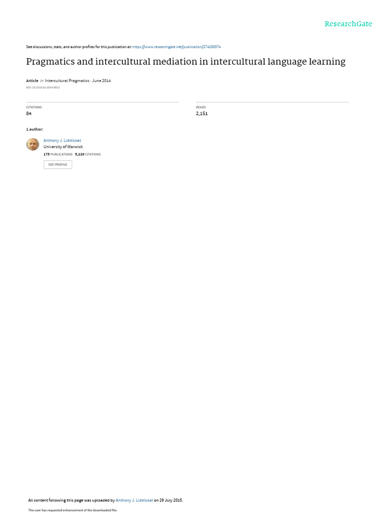 learning on language (Dervin and Liddicoat, 2013). In particular, much work on intercultural
