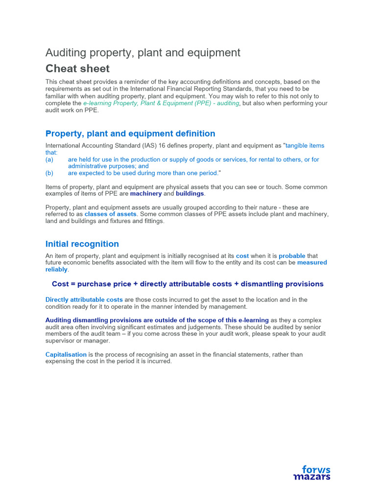complete the e-learning Property, Plant & Equipment (PPE) - auditing, but also when performing your