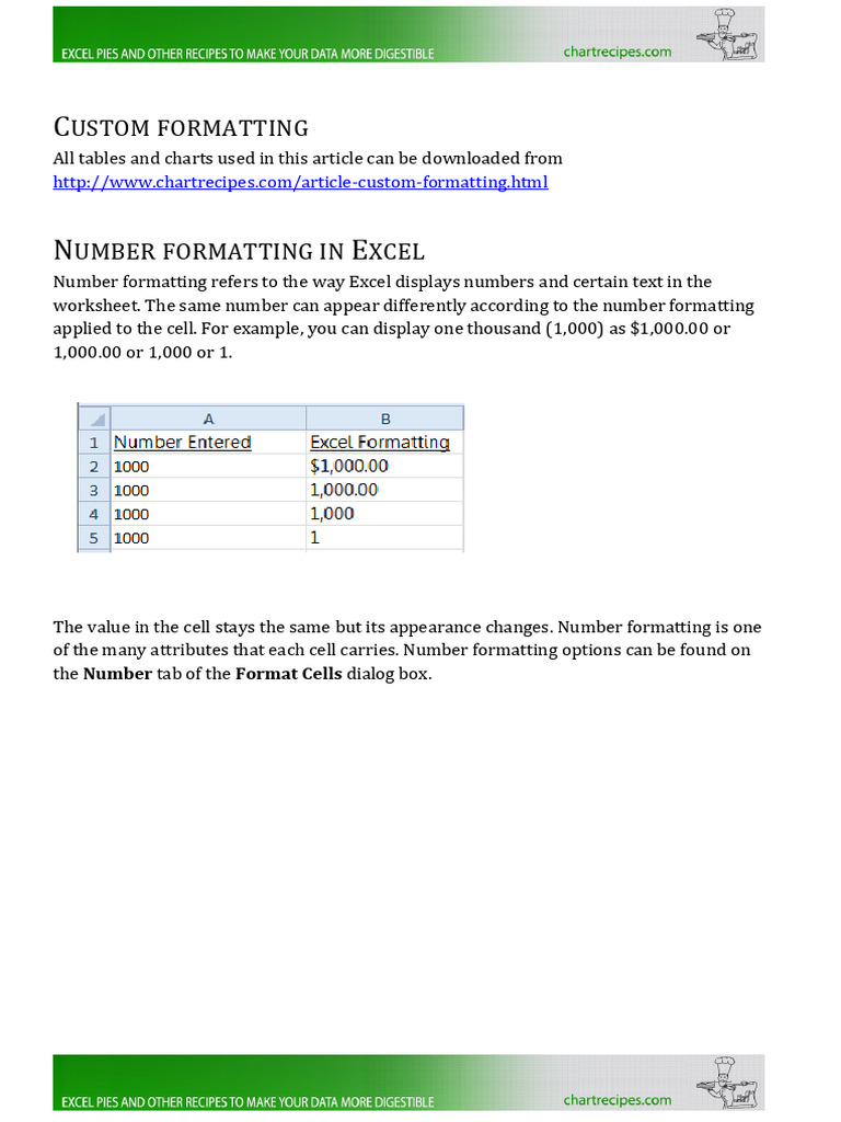 applied to the cell. For example, you can display one thousand (1,000) as $1,000.00 or