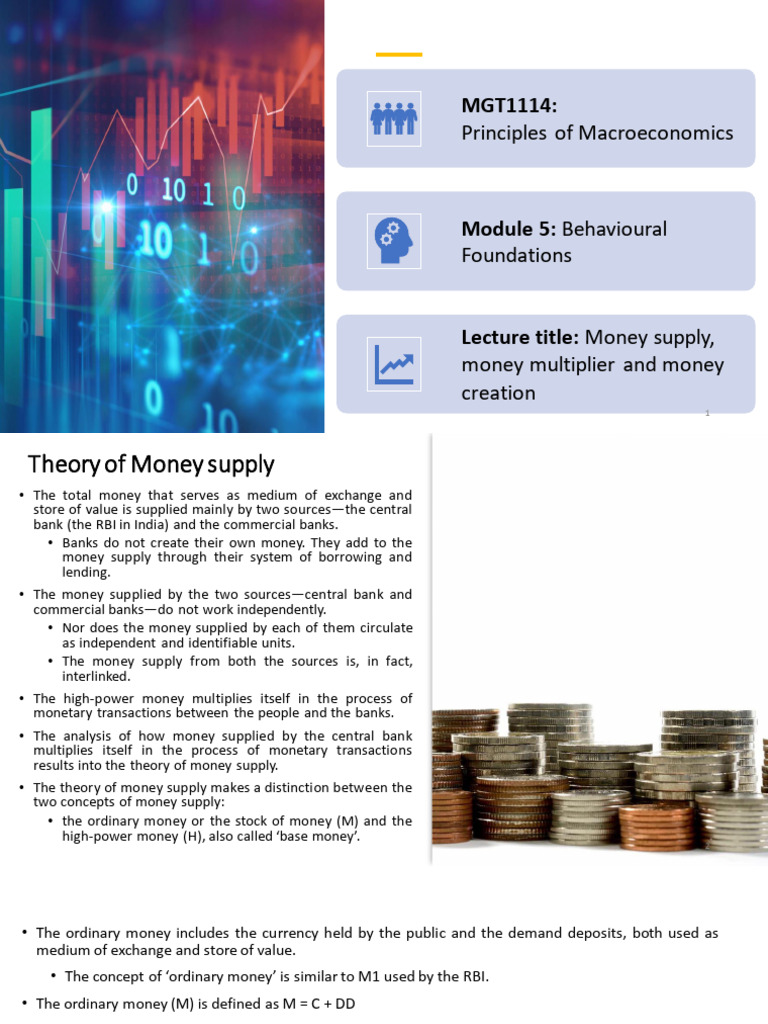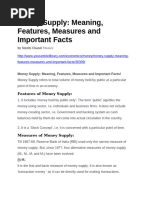 • The concept of ‘ordinary money’ is similar to M1 used by the RBI.