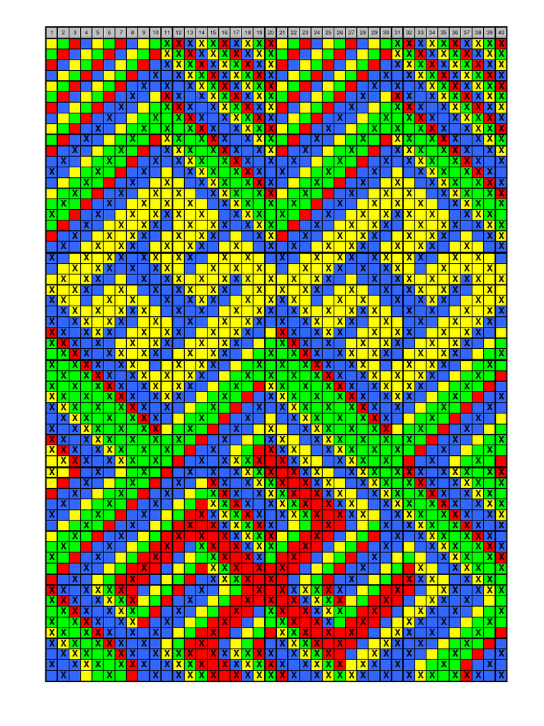 Die Farben in der ersten Reihe stehen für die, die im vorderen oberen Loch (zum Weber hin) zeigen.