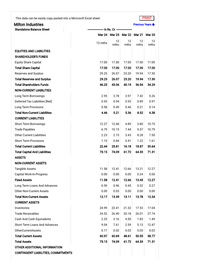 Milton Industries Previous Years �
