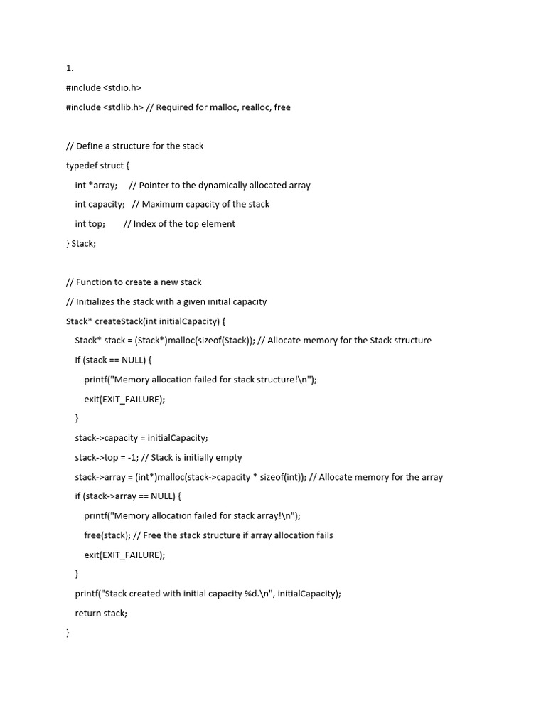 Stack* myStack = createStack(5); // Create a stack with initial capacity 5