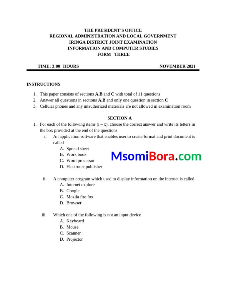 IRINGA DISTRICT JOINT EXAMINATION