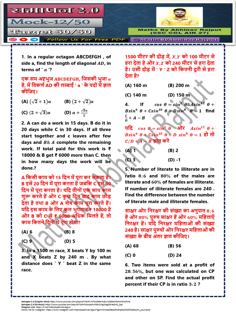 द िस्तुओ ों क 𝟐𝟖. 𝟓𝟔% के लाभ पर बेचा गया, 9. If base of a pyramid is in form of a
