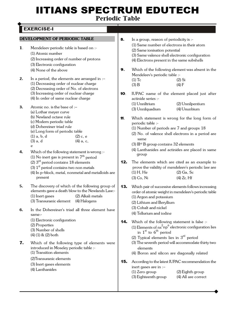 (1) Electronic configuration 14. Which of the following statement is false :-