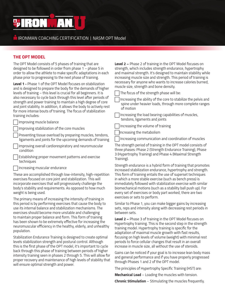 IRONMAN COACHING CERTIFICATION NASM OPT Model