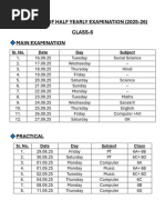 EXAMINATION SCHEDULE: HALF YEARLY EXAMINATION (VIII)