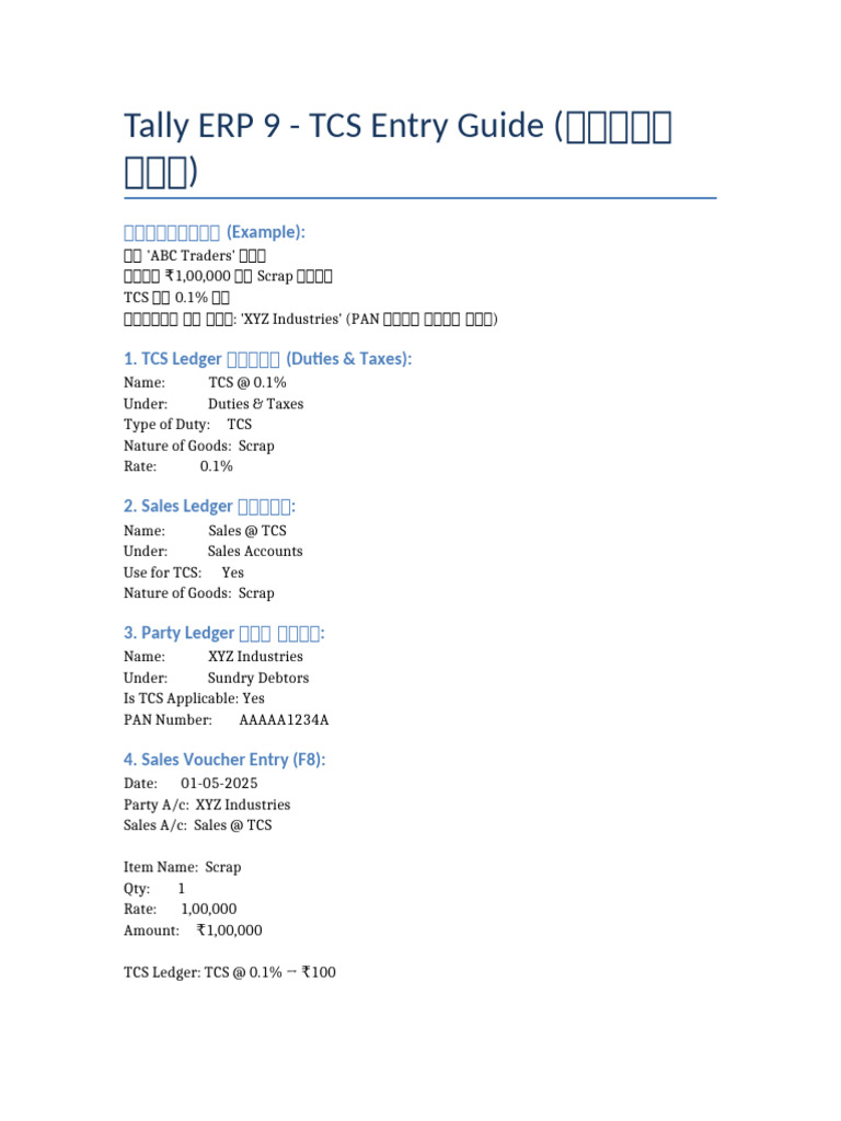 Tally ERP 9 - TCS Entry Guide (हिंदी