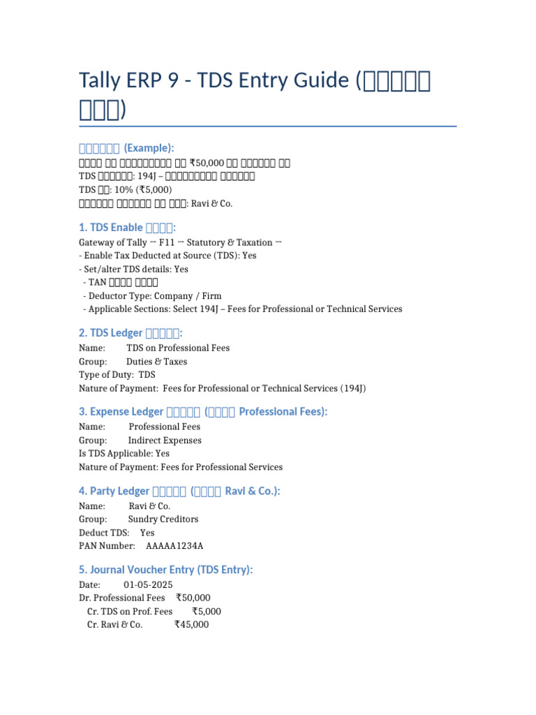 Tally ERP 9 - TDS Entry Guide (हिंदी