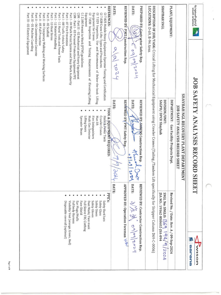 Rep. REVIEWED BY/PMT Safety Rey ‘APPROVED BY: Operation Foreman SP"