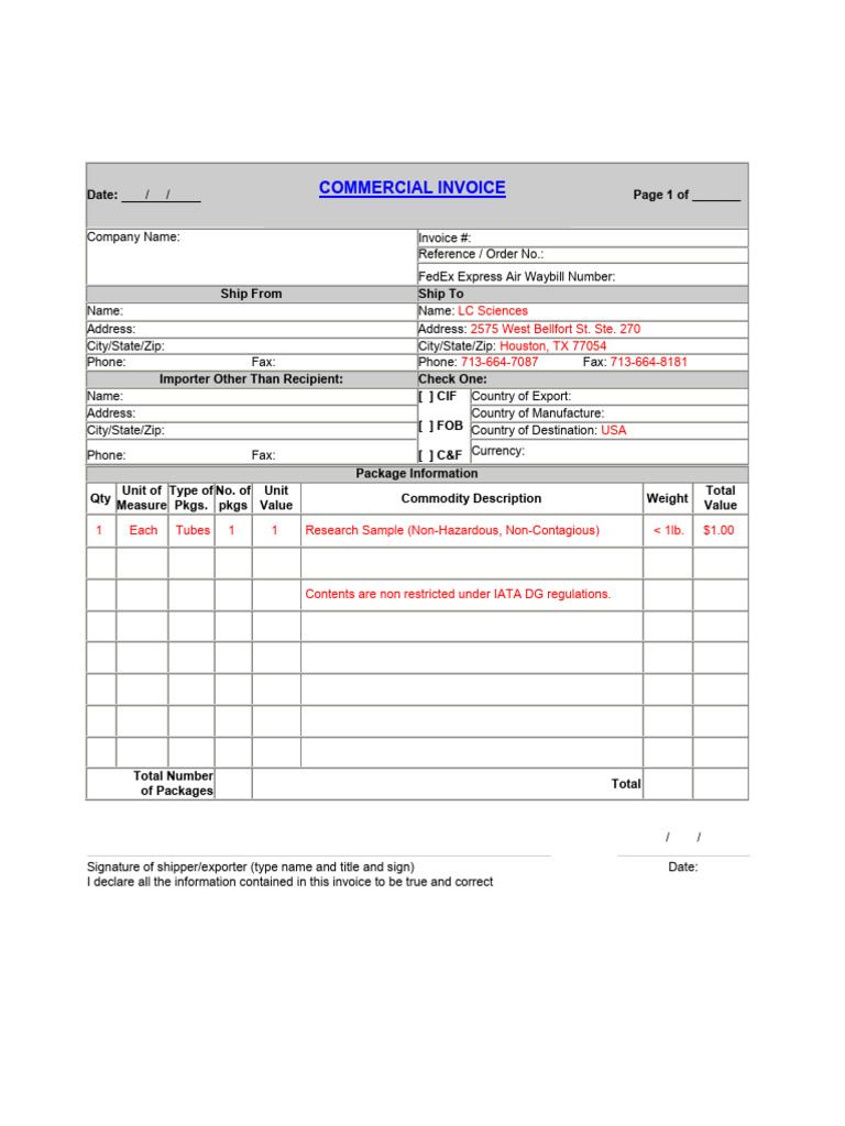 Date: / / COMMERCIAL INVOICE Page 1 of _______