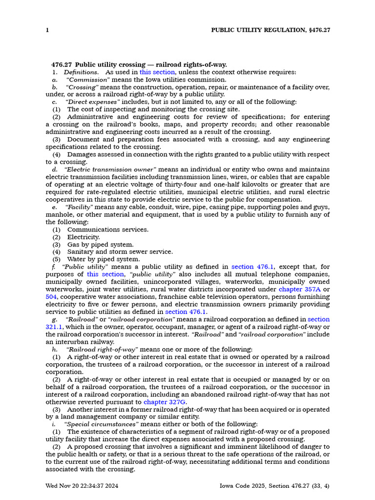 Wed Nov 20 [Link] 2024 Iowa Code 2025, Section 476.27 (33, 4)