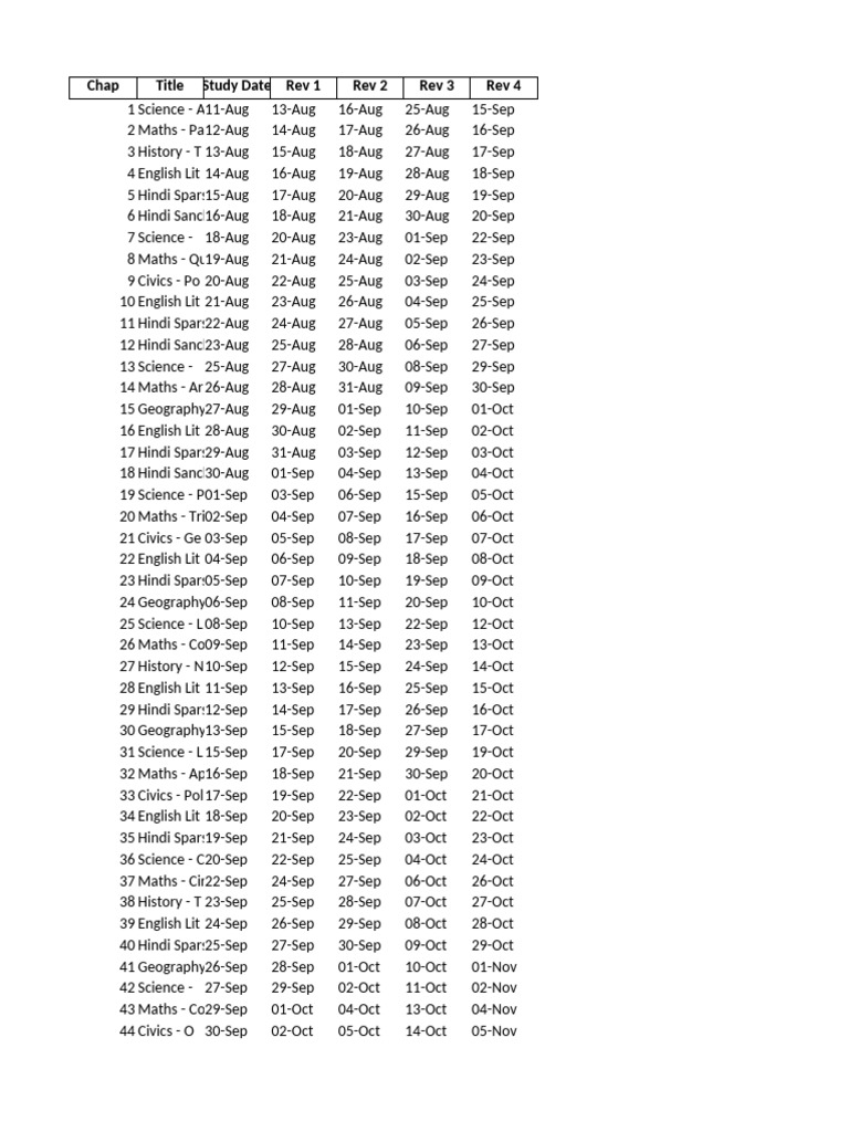 Chap Title Study Date Rev 1 Rev 2 Rev 3 Rev 4