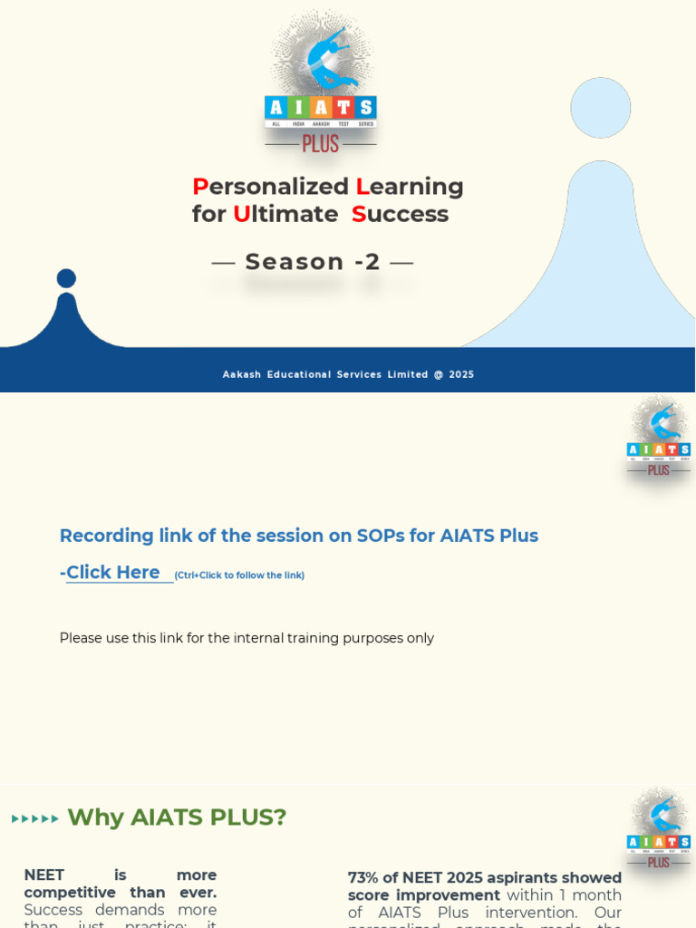 Final Test Series at Aakash Branch selected at the time of AIATS Plus admission form