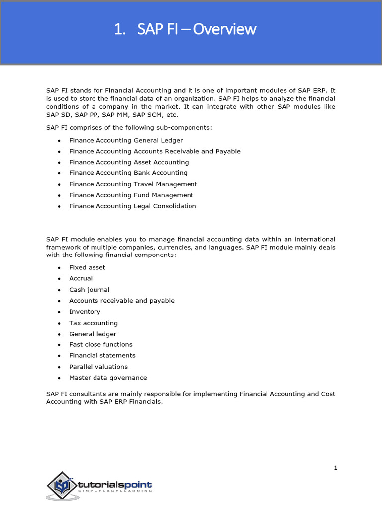 SAP FI stands for Financial Accounting and it is one of important modules of SAP ERP. It
