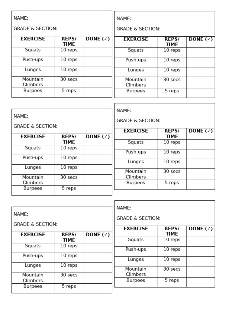 Push-ups 10 reps Push-ups 10 reps