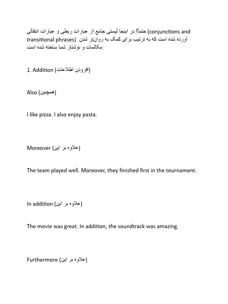 در اینجا لیستی جامع از عبارات ربطی و عبارات انتقالیconjunctions and