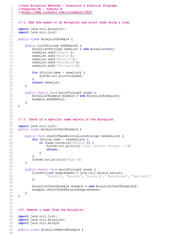 62 //3. Remove a name from the ArrayList.
