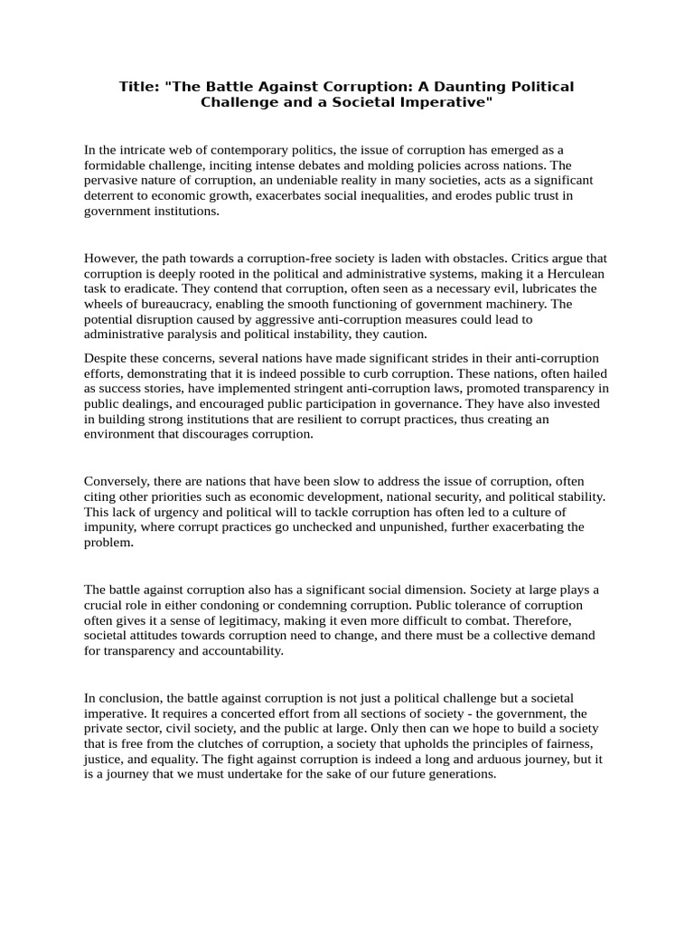 In conclusion, the battle against corruption is not just a political challenge but a societal