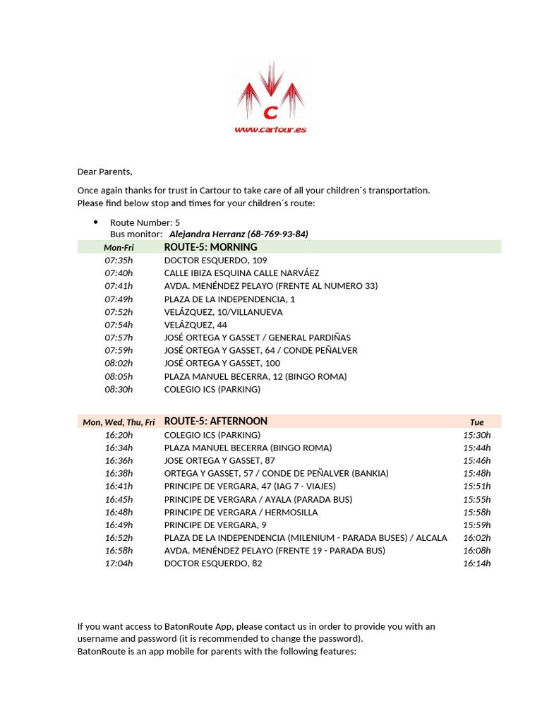 Once again thanks for trust in Cartour to take care of all your children´s transportation.
