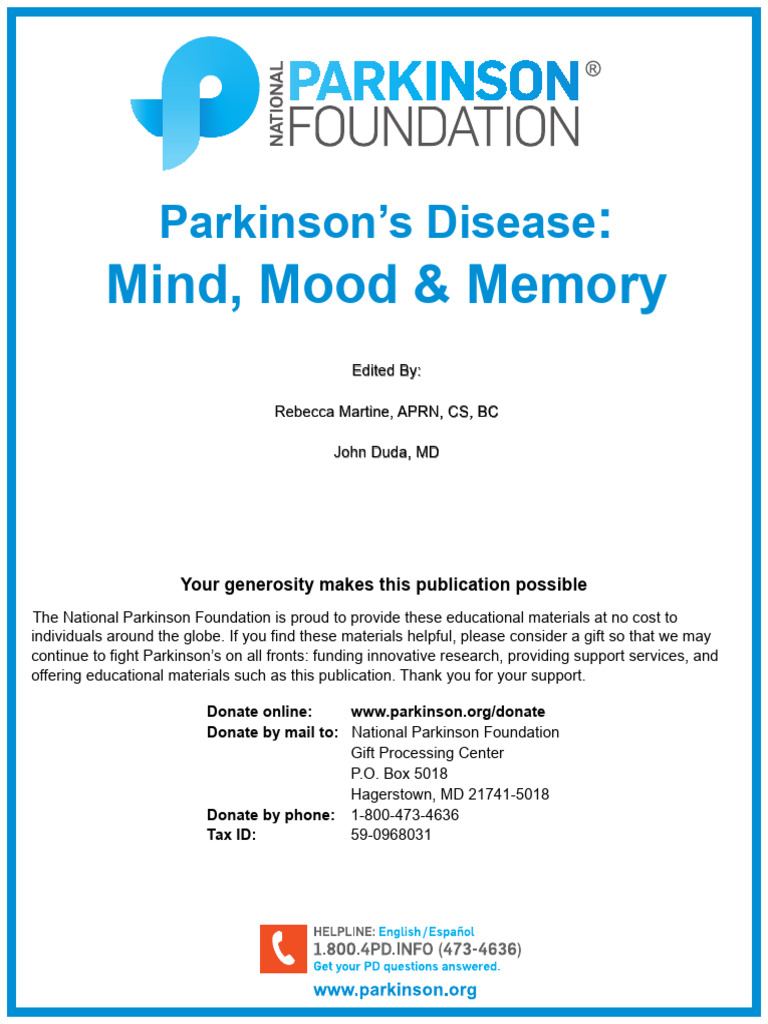 The National Parkinson Foundation is proud to provide these educational materials at no cost to