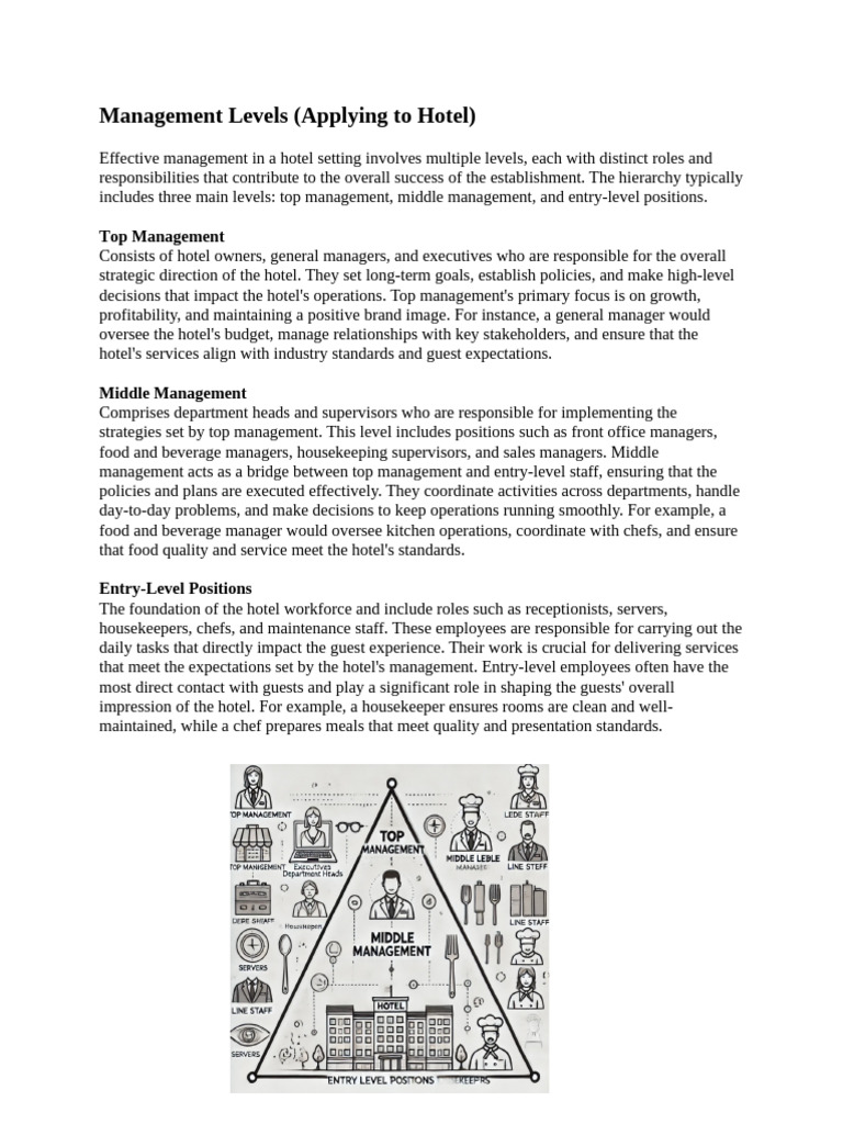 Effective management in a hotel setting involves multiple levels, each with distinct roles and